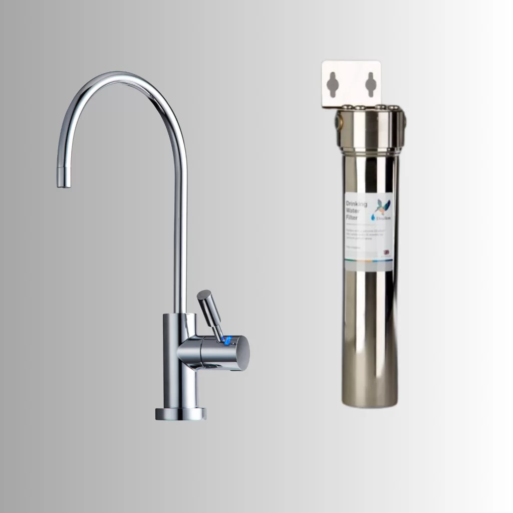 Purificatore acqua sotto lavello con miscelatore a tre vie - alloggiamento singolo in acciaio inox