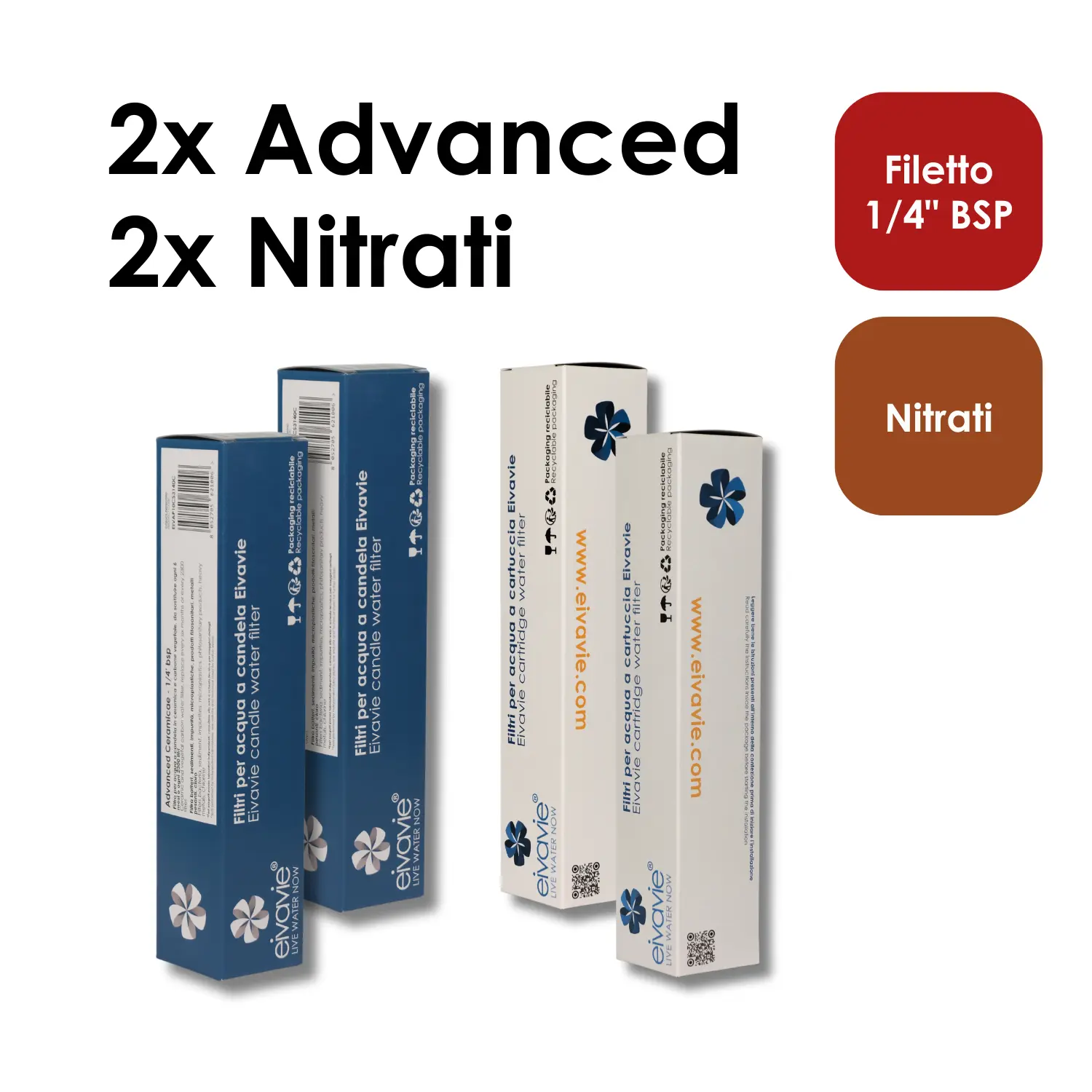 Pacchetto di filtri “A posto per 1 anno LIGHT” con 2 filtri Advanced Ceramicae 1/4″ bsp + 2 prefiltri nitrati