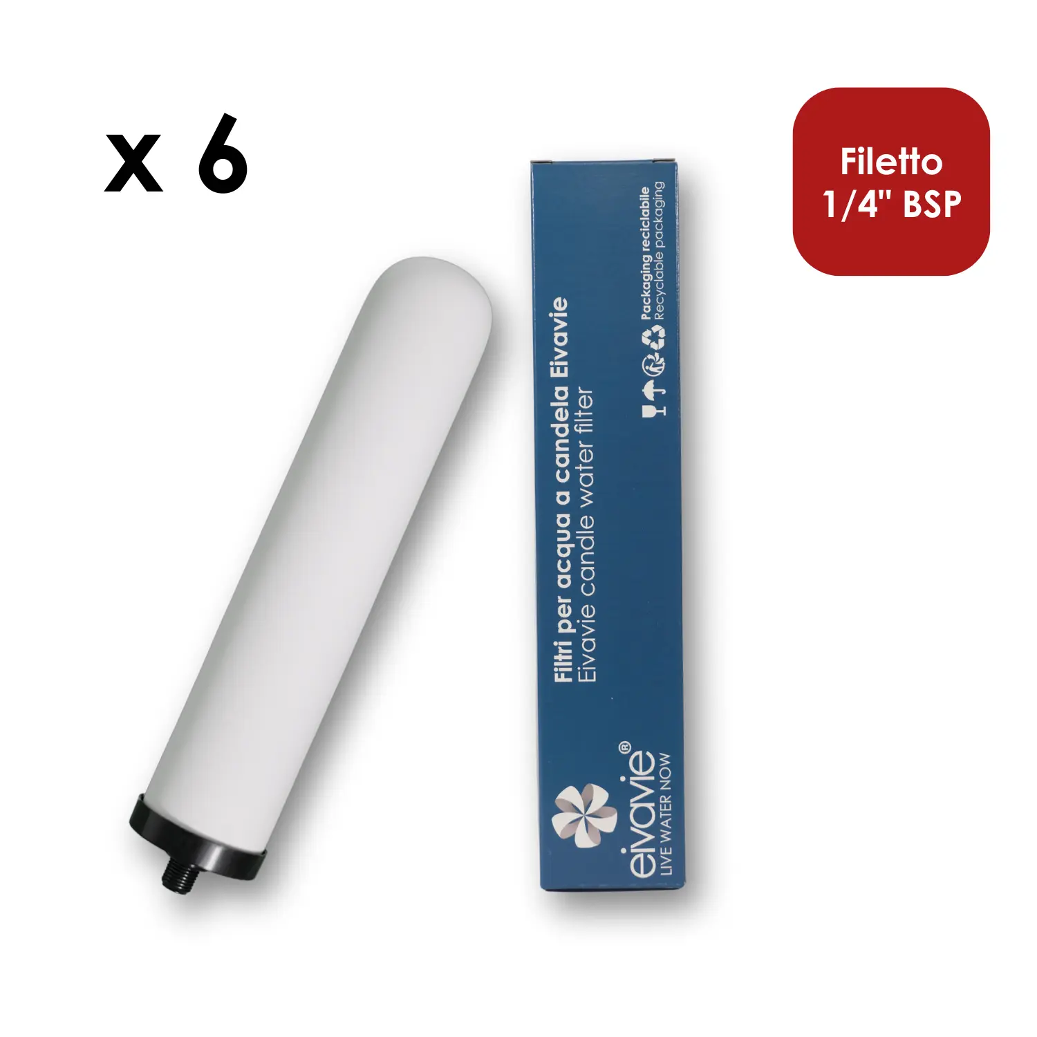 Pacchetto di filtri “A posto per tre anni” con candela filtrante Eivavie® Advanced Ceramicae 1/4″ bsp